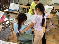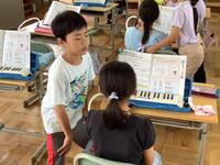 3年生の音楽の授業の様子です。鍵盤ハーモニカで「海風きって」の演奏に取り組んでいました。子供たちは、隣の子の演奏を聞いて、よいところを伝えています。互いにアドバイスし合える関係はとてもいいですね。