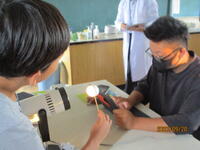 6年生の理科の授業です。球体に光を当てて、月の形の見え方を調べていました。子供たちは、実験をしながら、新月、三日月、半月、満月と手元で変化していく月の様子を確認することができ、「なるほど!」と大いに納得していました。これからは、秋の夜空に美しく輝く月の鑑賞も楽しめそうですね。