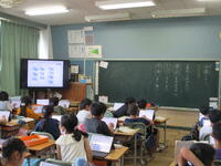 3年生の国語では、分類の方法について学習しています。今日はタブレットを活用し、自分で分類の観点を決め、挿絵を仲間分けする活動を行いました。他の人にわかりやすく伝えるためにはどのように分けるのがよいのか、子供たちはじっくり観点について考えていました。