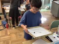 子供たちは、楽しそうに作業に取り組んでいました。必ずしも意図したようなデザインにはなりませんが、様々な色を使い、偶然できあがった模様のすてきさを感じているようでした。
