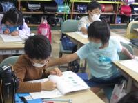 2年生の書写では、よりよい文字を書こうと集中して取り組む姿が見られます。お手本をじっくり見ながら、一画ずつ丁寧に取り組んでいます。満足のいく文字が書けるととても嬉しそうな子供たちです。