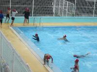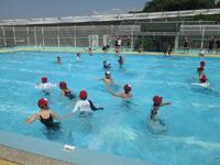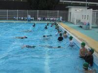1年生体育の授業では、水中を歩いたり、走ったり、潜ったりしながら進んでいます。水にもだいぶ慣れてきた様子が見られます。曇りの天気ですが、気温も水温も水泳には快適な環境状況です。