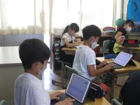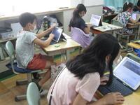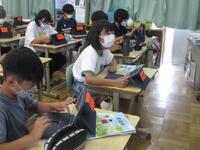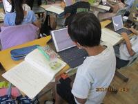 5年生社会の授業の様子です。「日本の米作りの課題と工夫」というテーマで各自がレポートを作成しています。教科書、資料集、インターネット等あらゆるものから情報を得ながら自分の考えをまとめています。45分間自分の学びを調整し、主体的に学んでいました。