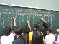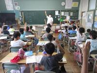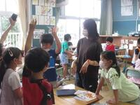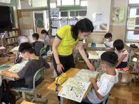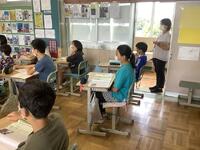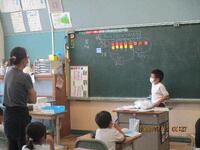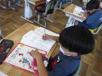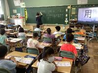 1年生国語の授業の様子です。平仮名の練習もいよいよ追い込みです。今日は「わ」の練習です。ゆっくり丁寧に大きく書けました。そして、「わ」のつく「わなげ」「わたがし」「わんちゃん」など、たくさんの言葉を見付けました。