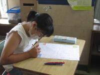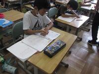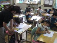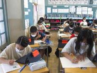 4年生は国語の単元テストと漢字テストに取り組んでいます。焦らず、落ち着いて、問題をしっかりと読んで解答用紙に記入しています。特に漢字は「とめ、はね、はらい」と書き順にも注意して丁寧に解答していました。