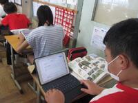 5年生社会の授業の様子です。「同じお米なのに、なぜ産地によって価格が違うのか」という学習問題を各自で追究しています。インターネットで情報を収集したり、資料を分析したり、動画を見たりと多様な学びでゴールを目指しています。