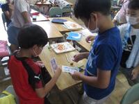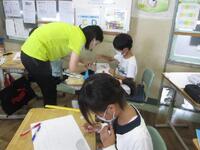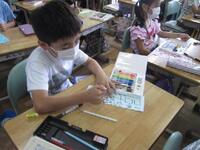 夏休みが近づき、今週はこれまでの学習のまとめをする活動が多くなっています。今日も、集中してテストに取り組む子供たちの姿が見られました。廊下には、図工「絵の具の使い方」で学習した「ミニトマト」と「かき氷」の作品がきれいに飾られていました。面談で来校された際には、ぜひ、ゆっくり鑑賞していってください。
