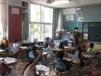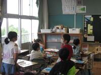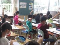 3年生理科の授業の様子です。風の働きによって物の働きはどのようになるかについて、「風が強いとカサが裏返ったり、飛ばされそうになる」、「風がないと凧あげができない」、「風があるとバドミントンがおもしろくない」など、様々な意見が出され、多くのことが風に影響されることが分かりました。