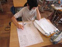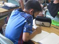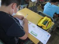 6年生の国語は夏休み前の総まとめテストです。漢字テスト50問の他、接続語の正しい使い方、漢字の成り立ちなど、多岐に渡る問題に取り組んでいます。