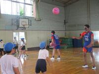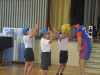 今日は、東レアローズの選手とスタッフの方々をお招きし、ソフトバレーボールの体験授業をしていただきました。子供たちは、間近で見るプロ選手の体格と迫力ある華麗な動きにびっくりし、目を輝かせていました。選手の皆さんが、基本の動きをわかりやすく丁寧に教えてくださるので、子供たちもすぐに夢中になってボールを追っています。