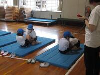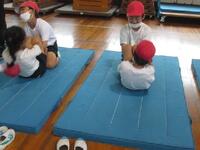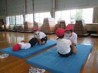 2年生体育の授業では、上体起こしの練習と測定を行いました。初めての体験でしたが、脚をしっかりと押さえて正しくできました。30秒間の測定で20回近くできる子もいて驚きました。