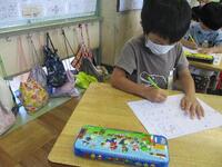 ひらがなの学習が順調に進んでいます。今日は「め」の練習でしたが、形がとりにくいようで、いつもより苦戦している様子が見られました。ワークシートを書いては消し、また書いては消しと、納得のいく字にしようと頑張っています。「めのつく言葉は?」の問いかけに、「はい!」と、たくさんの手が挙がっていました。