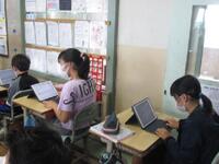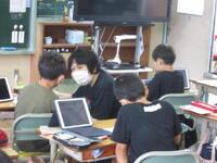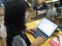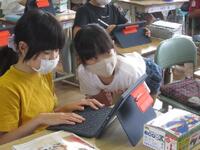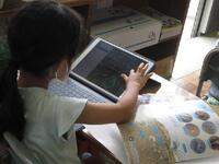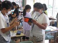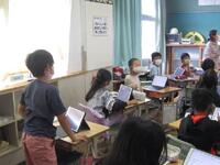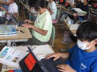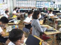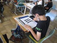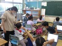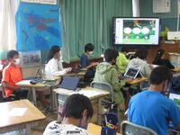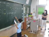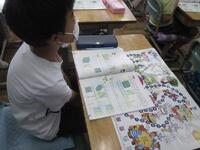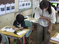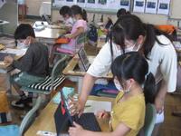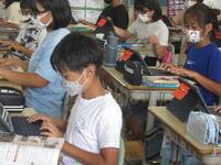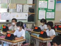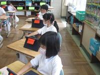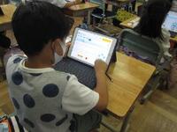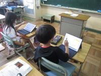 1年生算数の授業の様子です。eライブラリを使って足し算の問題に挑戦しています。1年生もどんどんタブレット操作を身に付け、学習効果を上げています。夏休みもたくさんの問題に挑戦してほしいと思います。