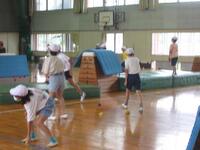 2年生体育の授業の様子です。反復横跳びに挑戦しています。少し練習すると動きのタイミングやリズムが分かってきたようです。20秒間での回数を記録しますが、数え方もしっかりと学びました。
