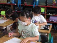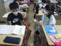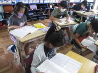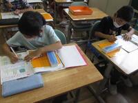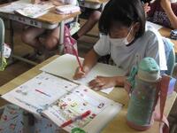 2年生の国語では、教科書の挿絵をヒントに夏に関係する言葉集めをしていました。夏のイメージで頭がいっぱいになった子供たち。自然と話題は、夏休みの過ごし方へ。楽しみにしていることや、計画していることがたくさんあって、友達に話したくてたまらない様子でした。