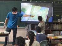 5年生理科の授業の様子です。メダカの卵はどのように育つのかについて、動画や画像を見ながら考えています。特に、栄養分となる油滴がなくならずに、孵化した後も残るのはなぜかについて追究しています。