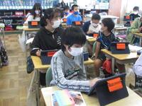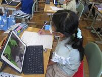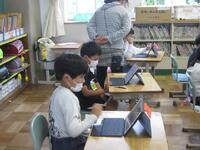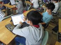 国語の教材「いきもののあし」の学習を生かし、1年生は「いきもののあし ずかん」作りを始めました。タブレットのワークシートで様々な生き物の足の写真を見て、子供たちは「面白そう!」とやる気いっぱいです。早速先生のまねをして、シートに書き込みを始めていました。