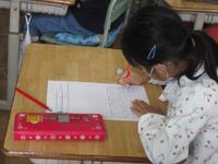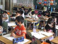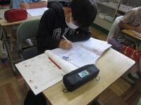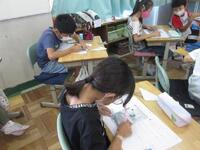 2年生は算数の単元テスト(1000までの数)に挑戦中です。足し算や引き算、数の大小、数字の表し方など授業で学習した様々な問題が出題されています。みんな集中して取り組んでいます。