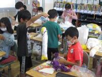 3年生図工の授業の様子です。「カラフルフレンド」制作の最終段階ですが、カラフルにできているか、立体的になっているか、パーツを上手につなげているかの3つのポイントが先生から示されました。このポイントを意識して取り組んでいます。