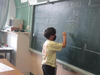 3年生の算数の授業の様子です。計算練習を終え、解答を板書したいと多くの子が積極的に手を挙げていました。指名されなかった子も、友達の解答に付け足しや修正するところはないか、しっかり見守っています。