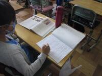 6年生音楽の授業の様子です。オーケストラ演奏の鑑賞をしていますが、気になった楽器、気付いたことや感じたことなど、ワークシートにぎっしりとまとめていました。曲は管弦楽組曲「惑星」より木星です。