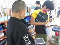総合的な学習の時間の調べ学習の様子です。「福祉」をテーマに、子供たちは自分の課題を設定し解決のための情報を集めています。タブレットで検索する子もいれば、図書室の本を活用する子もいます。いろいろな手段を使えることは大切なスキルです。