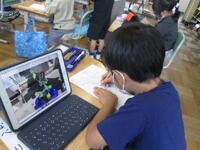 1年生生活の授業の様子です。先日加茂公園に生き物を観察しに行きましたが、今日はその生き物をもとに「生き物図鑑」を制作します。取った画像を取り入れ、色や形、大きさ、動きなどをまとめていきます。