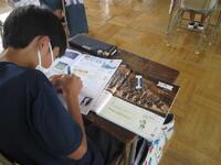 3年生理科の授業の様子です。チョウの成虫のからだのつくりについてまとめています。からだがいくつに分かれているか、脚の数はいくつか、羽の数はいくつか、そしてタブレットの図鑑で確認をしています。