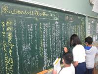 6年生国語の授業の様子です。「うれしかったです」「楽しかったです」を「思わず跳び上がって喜びました」「時間があっという間に過ぎました」など、文章の表現方法を工夫して作文を書いています。