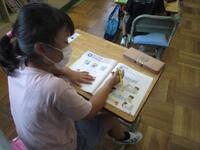 ひらがなの学習が順調に進んでいます。今日は「め」の練習でしたが、形がとりにくいようで、いつもより苦戦している様子が見られました。ワークシートを書いては消し、また書いては消しと、納得のいく字にしようと頑張っています。「めのつく言葉は?」の問いかけに、「はい!」と、たくさんの手が挙がっていました。