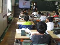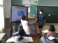 5年生理科の授業の様子です。メダカの卵はどのように育つのかについて、動画や画像を見ながら考えています。特に、栄養分となる油滴がなくならずに、孵化した後も残るのはなぜかについて追究しています。