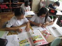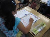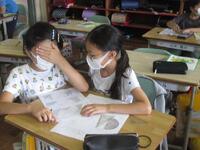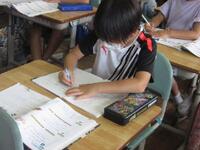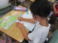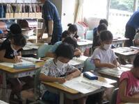 2年生の国語では、教科書の挿絵をヒントに夏に関係する言葉集めをしていました。夏のイメージで頭がいっぱいになった子供たち。自然と話題は、夏休みの過ごし方へ。楽しみにしていることや、計画していることがたくさんあって、友達に話したくてたまらない様子でした。