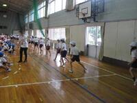 2年生体育の授業の様子です。反復横跳びに挑戦しています。少し練習すると動きのタイミングやリズムが分かってきたようです。20秒間での回数を記録しますが、数え方もしっかりと学びました。