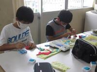 5年生家庭科の授業の様子です。なみ縫い、玉結び、玉留めを練習したあと、フェルトを使ってイチゴを製作しています。イチゴの種は玉留めで、名前はなみ縫いで仕上げます。2時間集中して取り組んでいます。