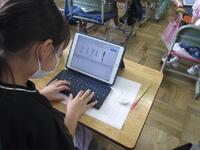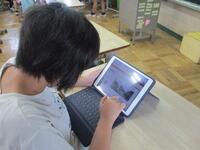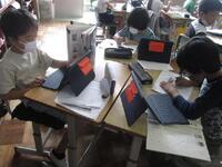 国語の教材「いきもののあし」の学習を生かし、1年生は「いきもののあし ずかん」作りを始めました。タブレットのワークシートで様々な生き物の足の写真を見て、子供たちは「面白そう!」とやる気いっぱいです。早速先生のまねをして、シートに書き込みを始めていました。