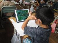 1年生生活の授業の様子です。先日加茂公園に生き物を観察しに行きましたが、今日はその生き物をもとに「生き物図鑑」を制作します。取った画像を取り入れ、色や形、大きさ、動きなどをまとめていきます。