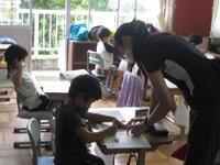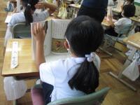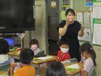 ひらがなの学習が順調に進んでいます。今日は「め」の練習でしたが、形がとりにくいようで、いつもより苦戦している様子が見られました。ワークシートを書いては消し、また書いては消しと、納得のいく字にしようと頑張っています。「めのつく言葉は?」の問いかけに、「はい!」と、たくさんの手が挙がっていました。