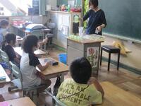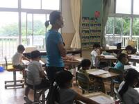 夏休みの思い出をみんなに紹介しています。どこへ行ったかみんなが分かるように、先生が日本地図を使って場所を示しています。楽しかった夏休みの様子がとてもよく伝わってきました。