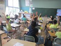 久しぶりの外国語活動にはりきって取り組む3年生です。ALTが次々繰り出す楽しいクイズに、元気よく英語で答えていきます。前回学習した数の数え方について、しっかり復習することができました。