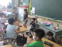 4年生の算数では、割り算の計算問題に取り組んでいました。集中して問題に取り組むだけでなく、終わるとさっと次の課題を始めることができていました。すっかり学校生活のリズムを取り戻している子が多いです。