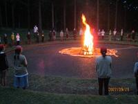 天候が心配でしたが、夕食後には、予定通りキャンプファイヤーを行うことができました。子供たちは、薄闇に包まれた山の中で、火の神と火の子による点火式を厳かな気持ちで静かに見守っていました。その後、大きなファイヤーの周りで、ダンスやスタンツを思い切り楽しみました。仲間たちと一つの火を囲んだこの特別な時間は、大切な思い出になったことでしょう。