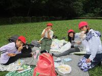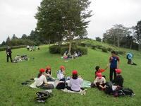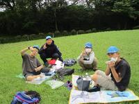 山中城跡の芝生広場でお弁当タイムです。箱根の里を出発して、1時間半ほど歩いた後ですが、子供たちはまだまだ元気いっぱいです。疲れはまったく見られません。友達とおいしそうにお弁当を頬張り、しばし休憩を取った後、また元気よく出発していきました。