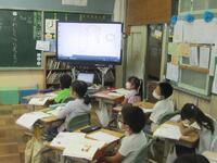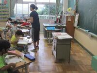 1年生国語の授業の様子です。見付けたものを詳しく伝えるために、原稿用紙を使って文を書いています。正しい原稿用紙の書き方いついて、先生から詳しく説明がありました。「行」と「マス」をしっかりと理解して丁寧に仕上げています。