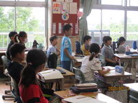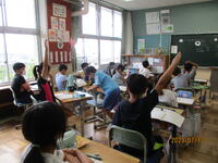 5年生は総合学習の時間に「米」を教材にし、個人テーマを設定して調べ学習を進めています。「稲を丈夫に育てるには?」「米にはどんな種類があるの?」「日本と世界の米作りや料理法の違いは?」「稲の病気や害虫は?」など、様々なテーマが設けられています。今日は、これまで自分が調べてきた内容を班の友達に報告し、夏休みにさらに学習を深めるにはどうしたらよいかを考えました。ベランダで育てているバケツ稲も元気に大きく育っています。