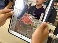 5年生理科で有料アプリFroggipediaを使ってカエルの発生や体のつくりをAR「拡張現実」で疑似体験しました。