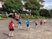 2年生の体育の授業の様子です。気持ちのよい天候の中、ボール投げの運動に取り組んでいました。相手がうまくとれるように投げることを意識しながら、ボール投げの運動に取り組んでいた2年生です。