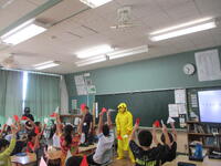 昼休みに、本校のボランティア「本読み隊」さんによるイベントが実施されました。音楽室のステージを劇場のように仕立て、手作り大型絵本を使った読み聞かせをしてくださいました。絵本から飛び出した登場人物の人形たち、お話の雰囲気を盛り上げる背景や効果音、読み聞かせの途中には、みんなで歌う場面もあり、会場は大いに盛り上がりました。集まった子供たちは目を輝かせ、前のめりになってお話の世界に引き込まれていました。本読み隊の皆様、本日も温かで素敵な時間を本当にありがとうございました。