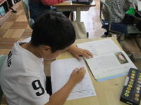 本日は、7回目の放課後学習でした。子供たちはすっかり学習支援員さんたちと打ち解け、算数プリントを使った学習に張り切って取り組んでいます。「やったね!全問正解だよ。」「前より、ミスが少なくなったよね。」「最近計算が得意になってきたね。」などなど嬉しい褒め言葉もたくさんもらい、ますますやる気が高まります。プリントが終わるともらえるシールがどんどんたまっていくのを見て「おれ、すごいがんばったなあ・・・。」とつぶやく子もいました。やればできる、がんばるのは楽しいを実感する学習時間になっています。