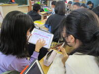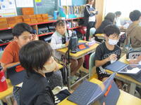 5年生の社会の授業の様子です。日本の工業地帯・工業地域にはどんな特徴があるかを考えていました。子供たちは、各工業地帯・工業地域の生産額・生産種別をもとに、それぞれの特徴を考えていました。考えたことは白地図にまとめていきます。最後には、クイズで学習したことを確認しました。ウェブサイトを利用したクイズでランキング等も表示されることから子供たちはたいへん盛り上がっていました。