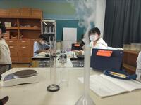 6年生理科で火山の噴火を実現しました。薬品は過酸化水素水と二酸化マンガンです。